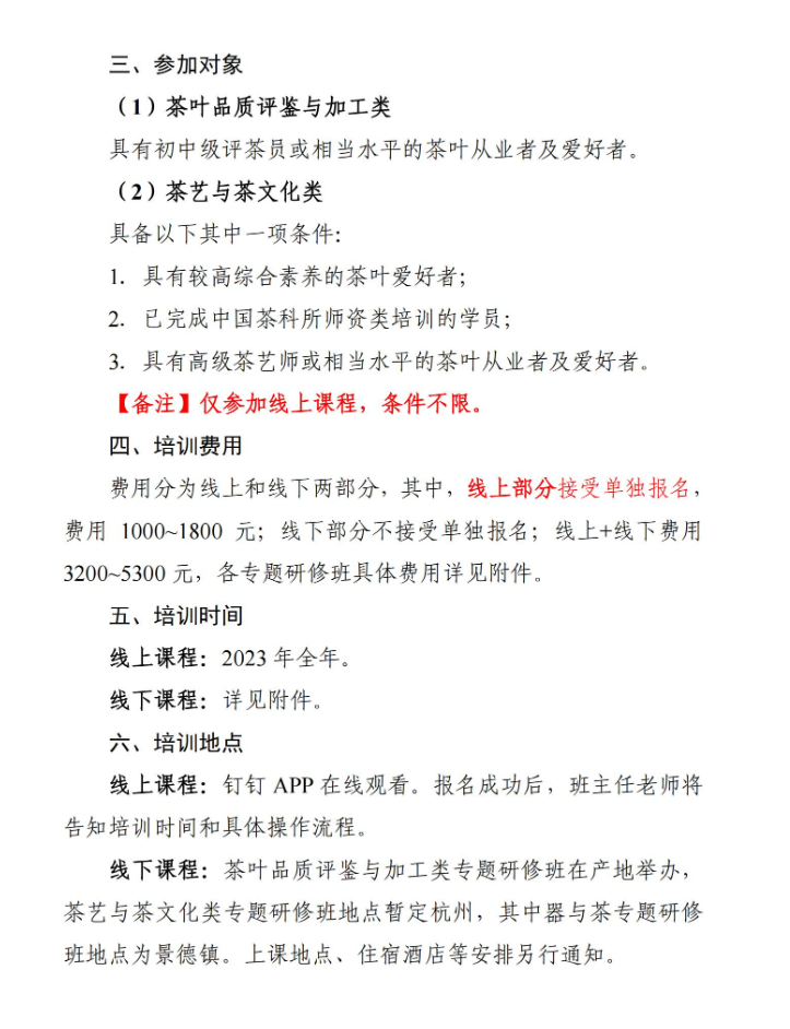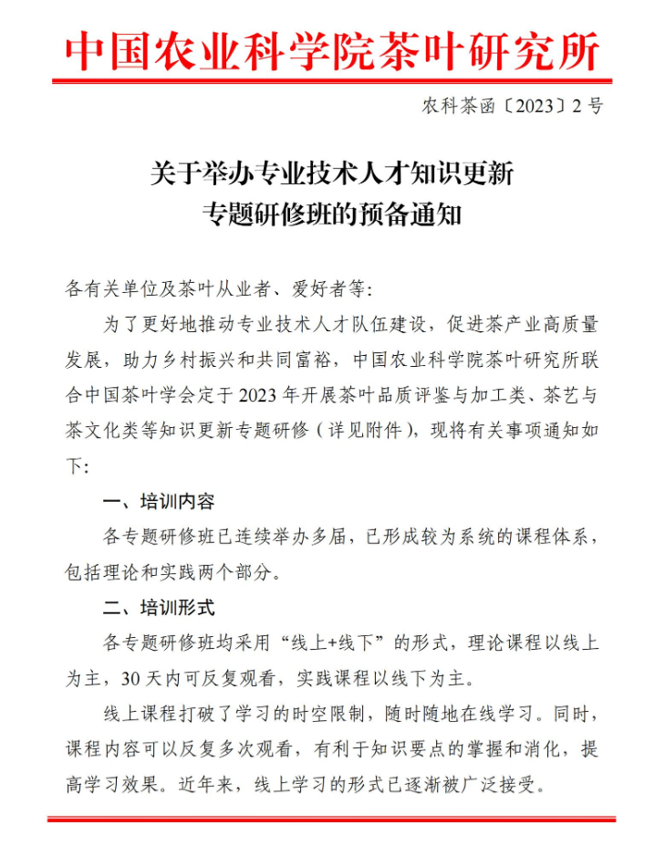 为推进我省茶艺师、评茶师职业技能提升,助力乡村振兴,促进产业发展,并充分考虑茶产业从业者工作实际,陕西省茶叶流通协会(备案号:S000061020050)职业技能等级认定中心将开展周末茶艺师、评茶师职业技能培训工作。陕西省茶叶流通协会职业技...